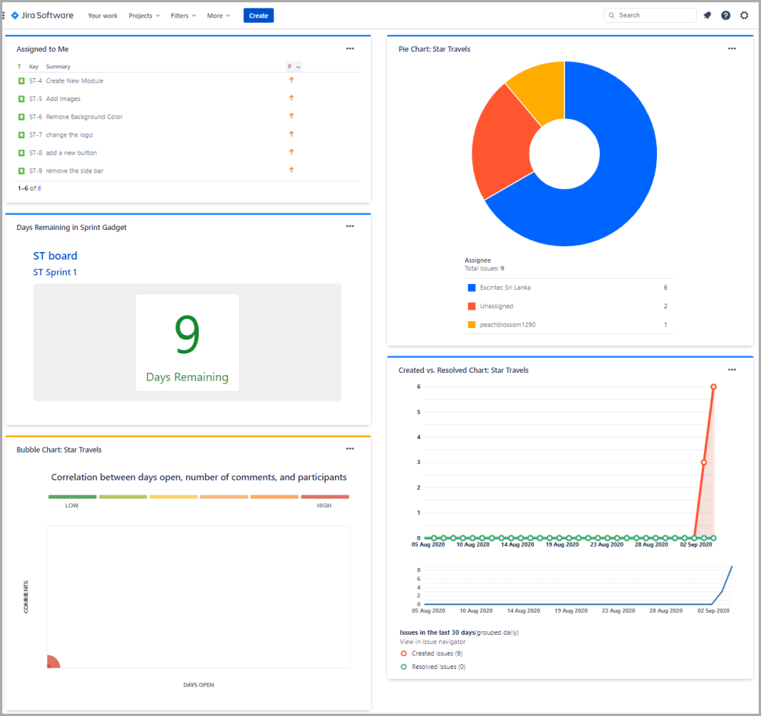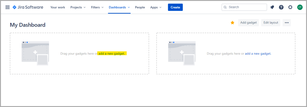The Jira dashboard is like a control panel for your projects. You can create several dashboards for each project you work on, or you can view your system in different ways.