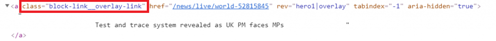 We can see that the news headline text appears within the block-link__overlay-link class.
