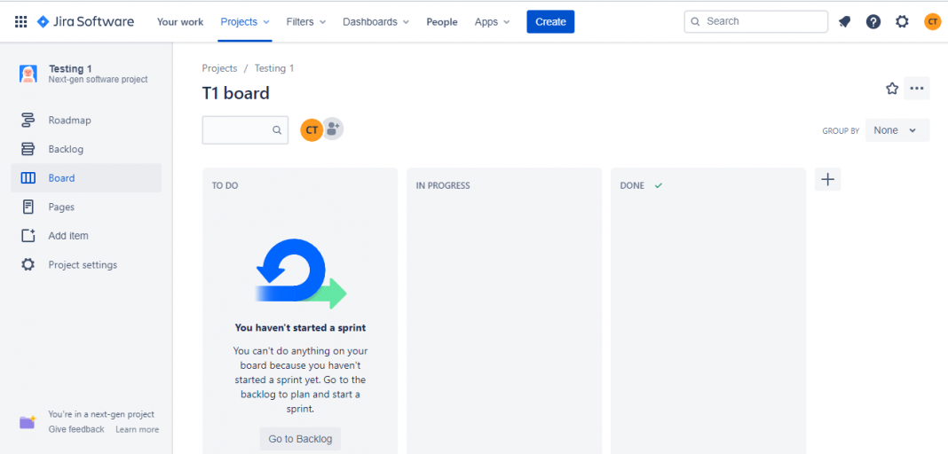 You can view your work, projects, filters, Dashboards, and people in the project by using the menu bar items. Use supportive integrations and apps to your projects using apps. You can create another project by using “Create”.