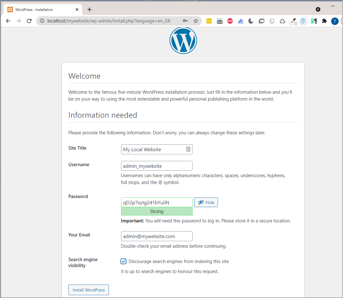 Installing WordPress on your computer helps you try out WordPress, test themes and plugins, and learn WordPress development. It lets you operate a website within your own computer. The website isn’t visible to other people. So, you can make an experiment with the design components, plugins, settings, etc. there.