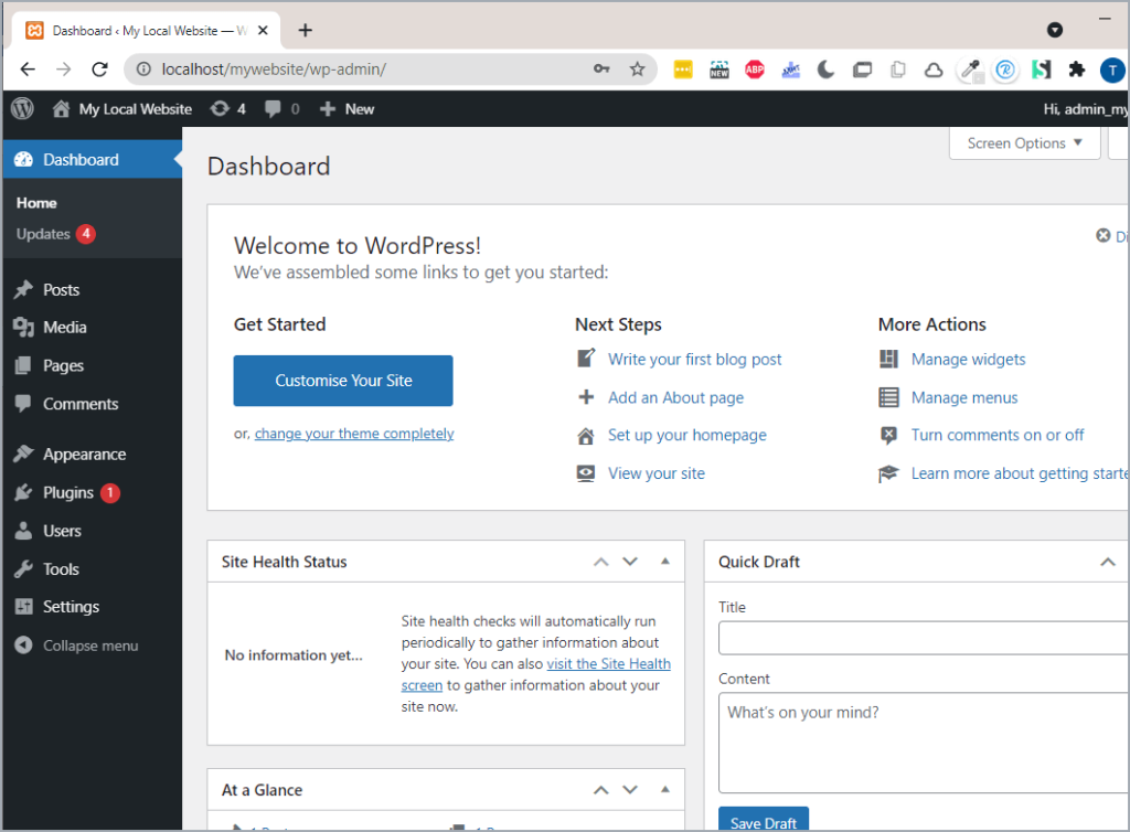 Finally, you’ll reach your admin dashboard. It looks like this: