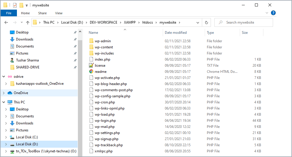 Create your project folder inside XAMPP’s htdocs to host your WordPress files. Proceed with creating a new folder into XAMPP’s htdocs folder for your site and provide a name of your choice. For example, I am going to name it as ‘mywebsite’.