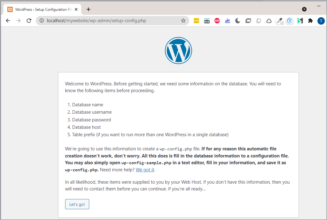 To install WordPress locally, you need to extract WordPress files (unzip) into the newly created folder inside ‘htdocs’, in our case we will copy it into ‘mywebsite’ folder which we created.