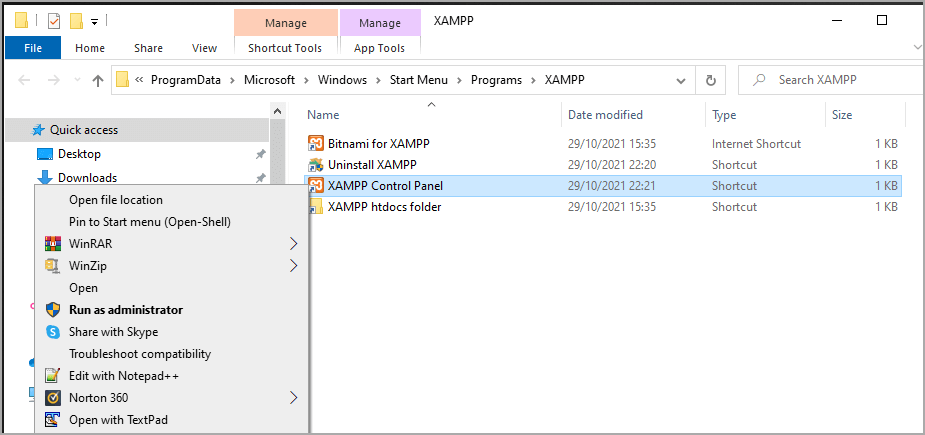 Hence in this post, we will see how to set up XAMPP executable shortcut to run as-admin.