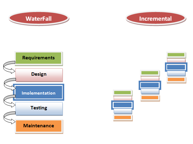In a traditional software development segment, organizations either follow a waterfall method or an incremental method.