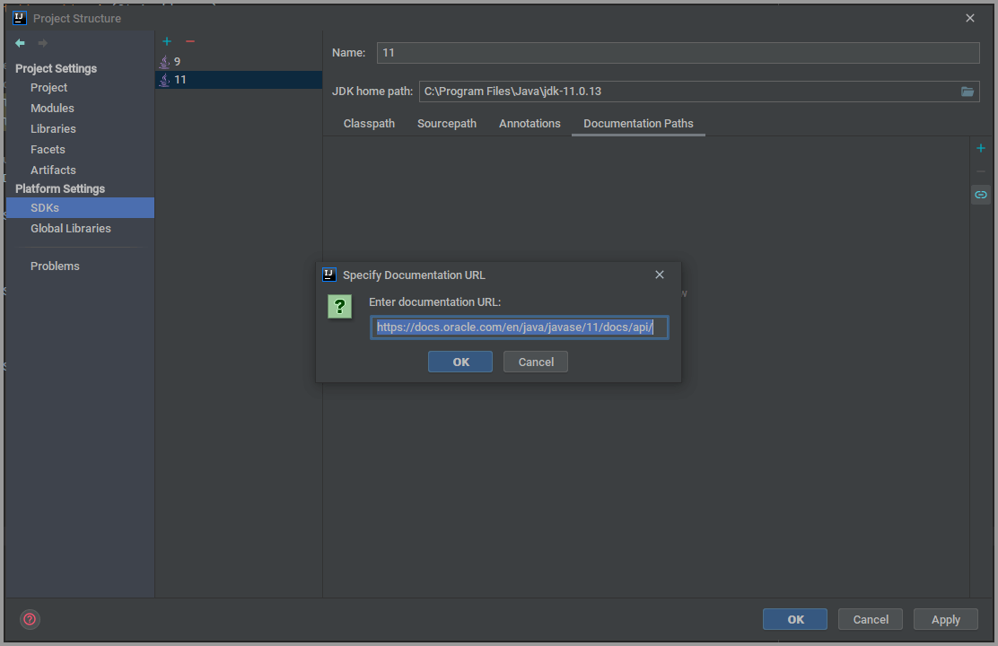 Locate the URL for your JavaDoc online. For example, the URL for Java 11 Java API Doc is – https://docs.oracle.com/en/java/javase/11/docs/api/index.html