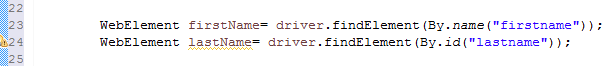 Initially, we need to create WebElements for the ‘Firstname’ and ‘Lastname’ fields.