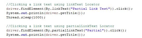 driver.findElement(By.linkText("Partial Link Test")).click();