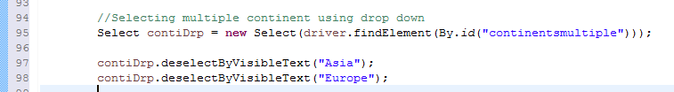 Select contiDrp = new Select(driver.findElement(By.id("continentsmultiple")));